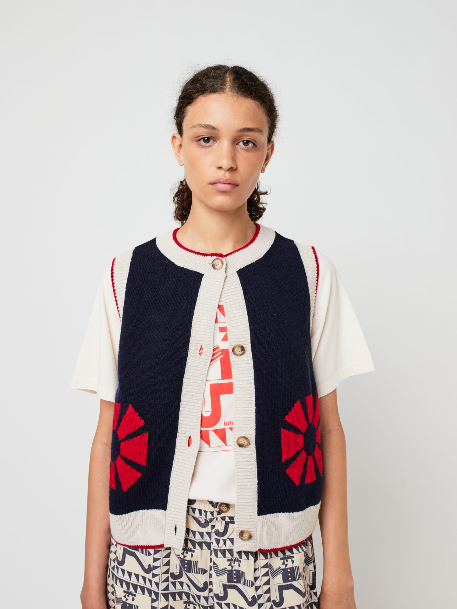 Light cotton with a natural grain, steady but breathable to wear. Its dark ground gives presence and sharp contrast to embroidery.