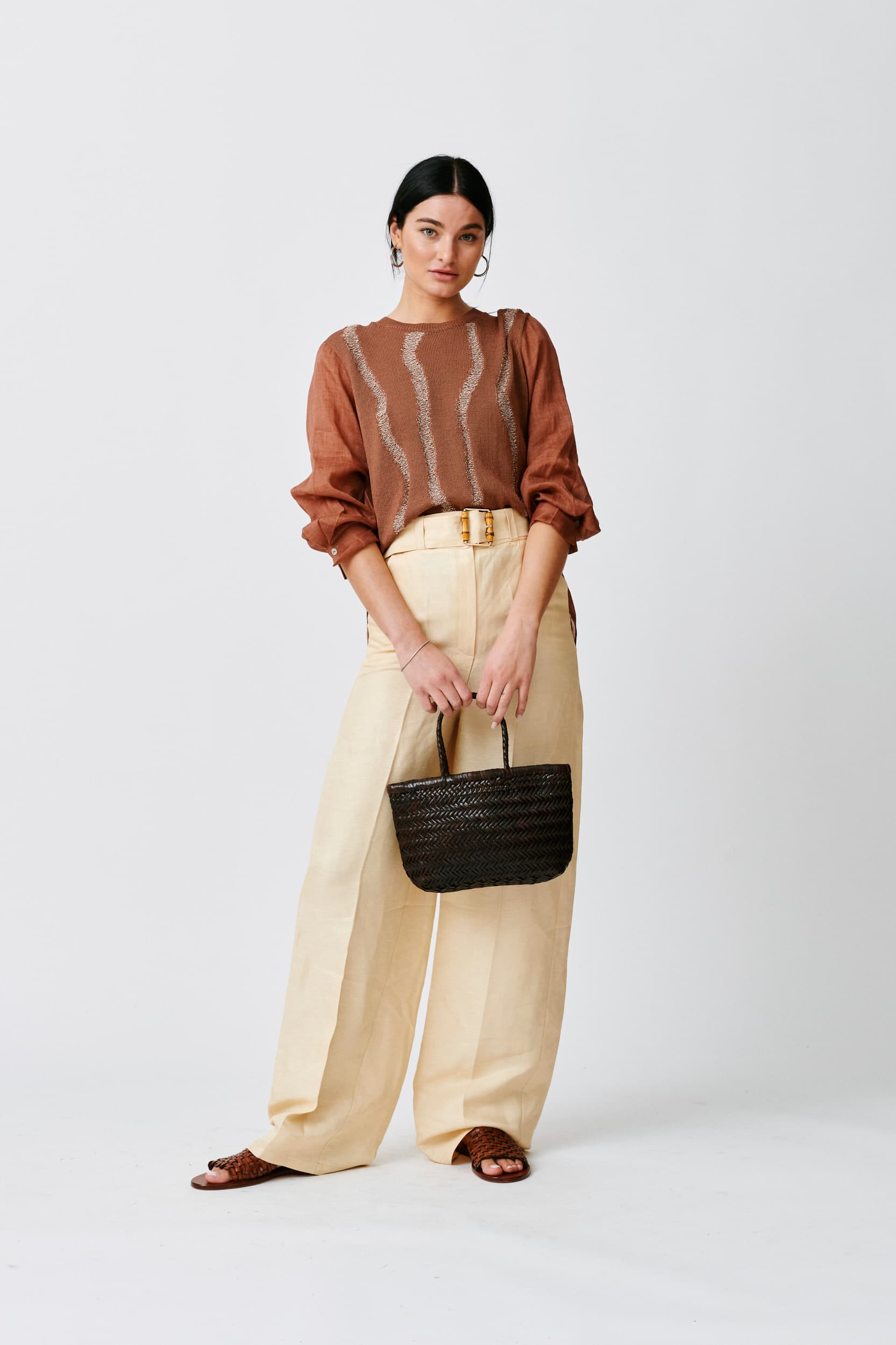 The "Mini Flat Gora" is a standout piece in our collection, expertly handwoven from buffalo calf leather. This best-selling mini bag captures the essence of traditional basket weaving with a subtle twist at the top, adding a unique flair to its classic design. Lightweight and versatile, it's ideal for carrying just the essentials, making it a superb choice for both casual outings and more formal events.