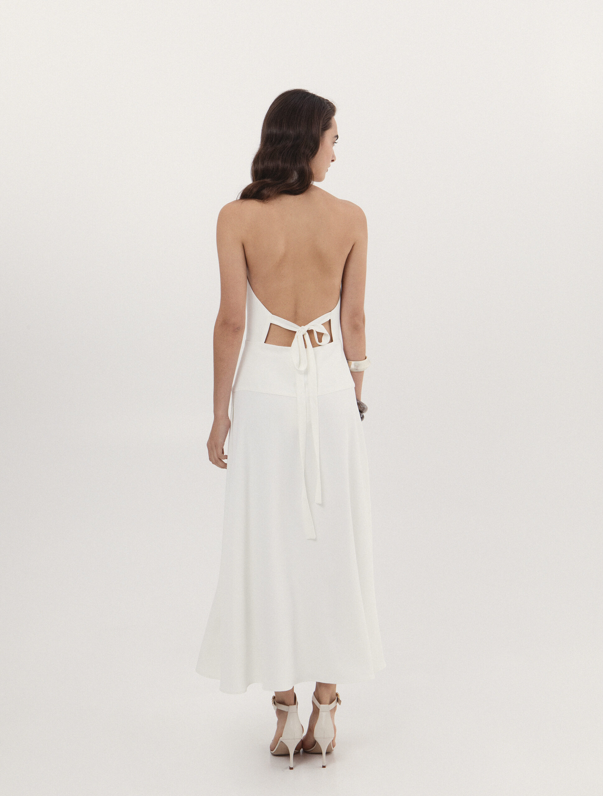open back midi dress in white
