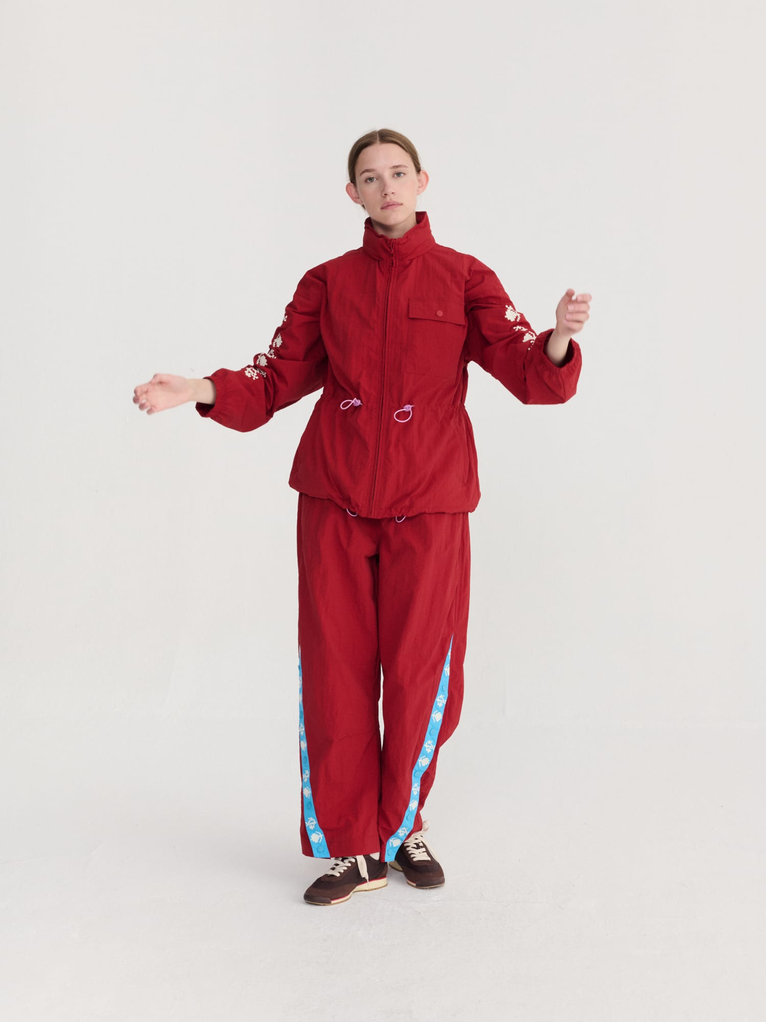 Red windstoper. Designed with hooded, dropped shoulder seam, non stretchy fabric, lightweight fabric and designed with pockets. Fits true to size, take your normal size. Made in China.