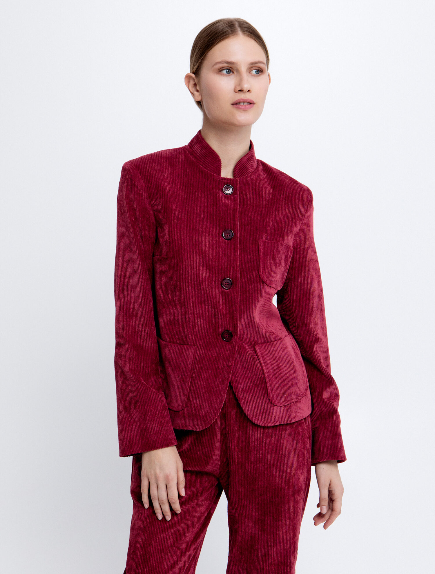Corduroy Jacket With Mandarin Collar