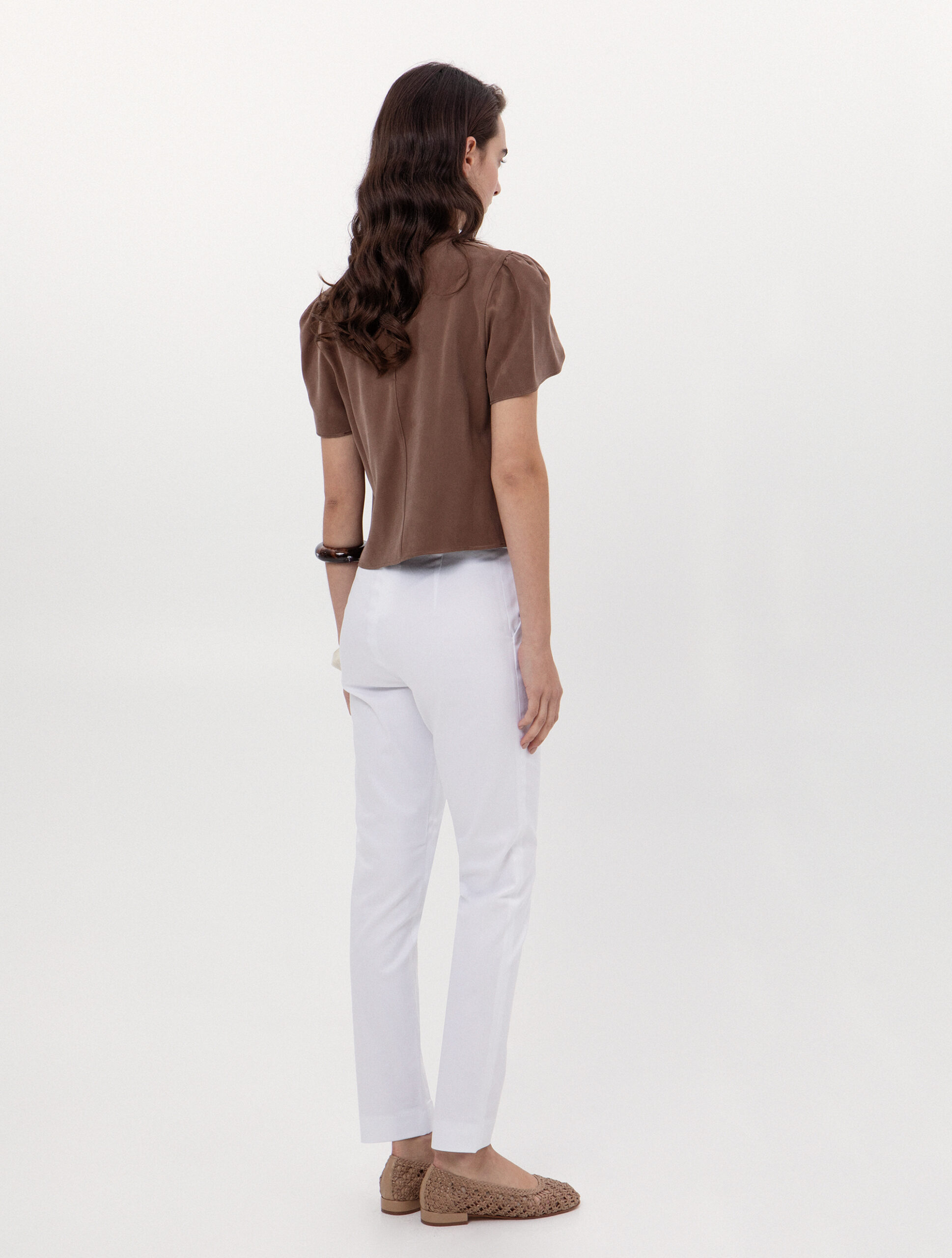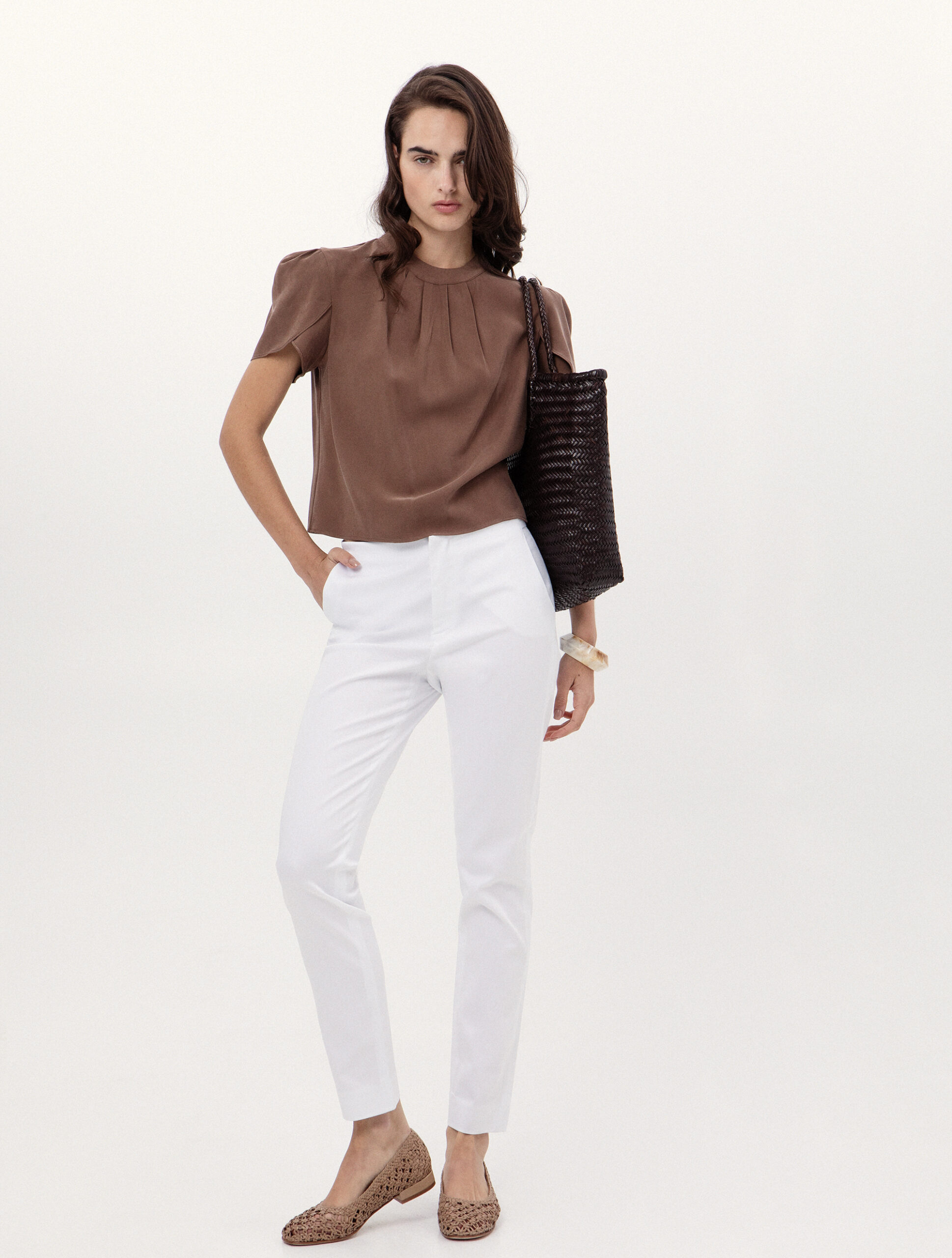Παντελόνι σε slim-fit γραμμή που κολακεύει την σιλουέτα. Διαθέτει σταθερή μέση και διακριτικές τσέπες, προσφέροντας άνεση και στυλ από το πρωί έως το βράδυ.