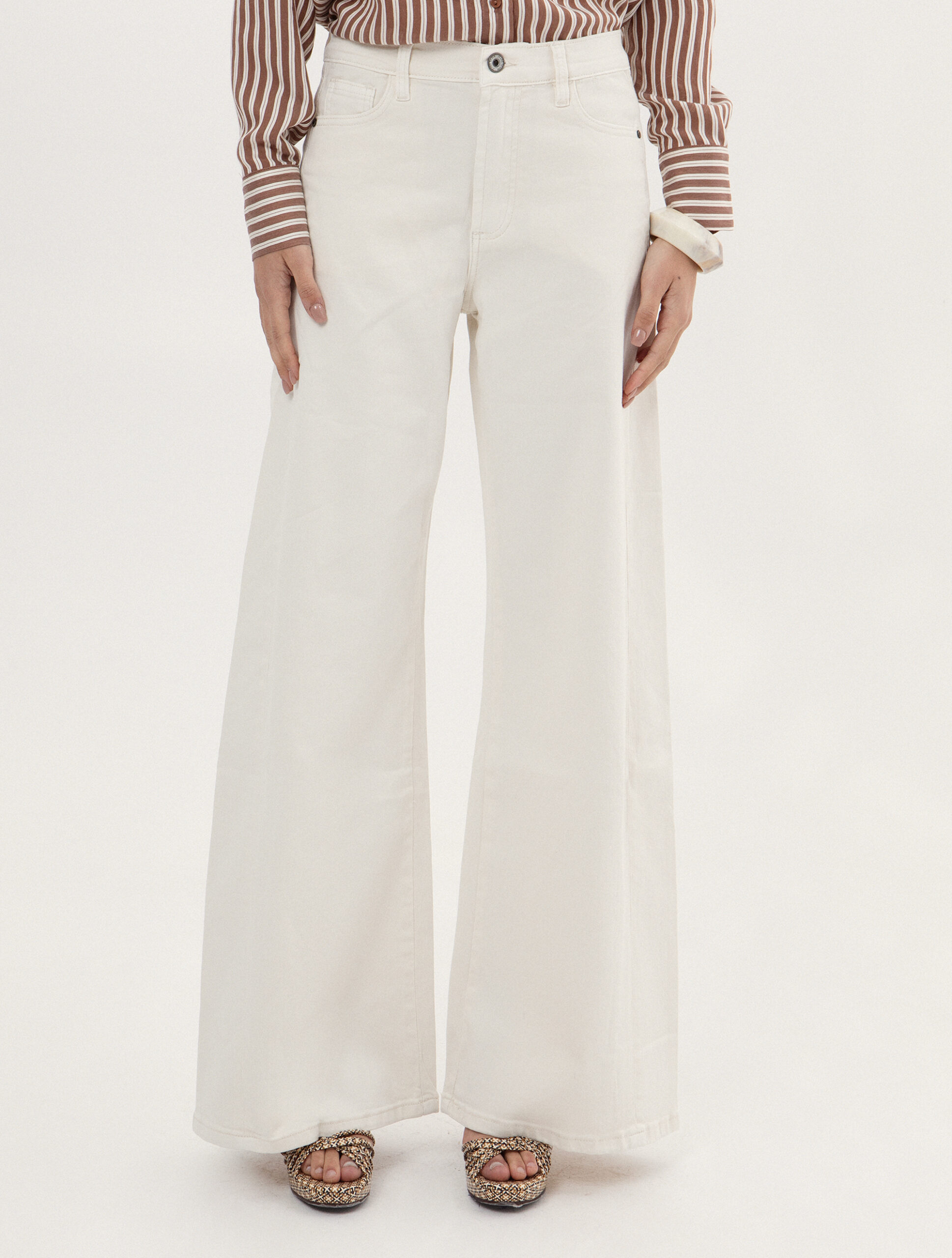 Denim εκρού παντελόνι σε φαρδιά γραμμή, προσφέρει μια μοντέρνα σιλουέτα που κολακεύει κάθε σωματότυπο και χαρίζει απόλυτη άνεση για όλη την διάρκεια της ημέρας. Ξεχωρίζει για το εξαιρετικά μαλακό βαμβακερό ύφασμα του, που προσφέρει την πολυτελή αίσθηση μιας παντελόνας με την ανθεκτικότητα του denim.