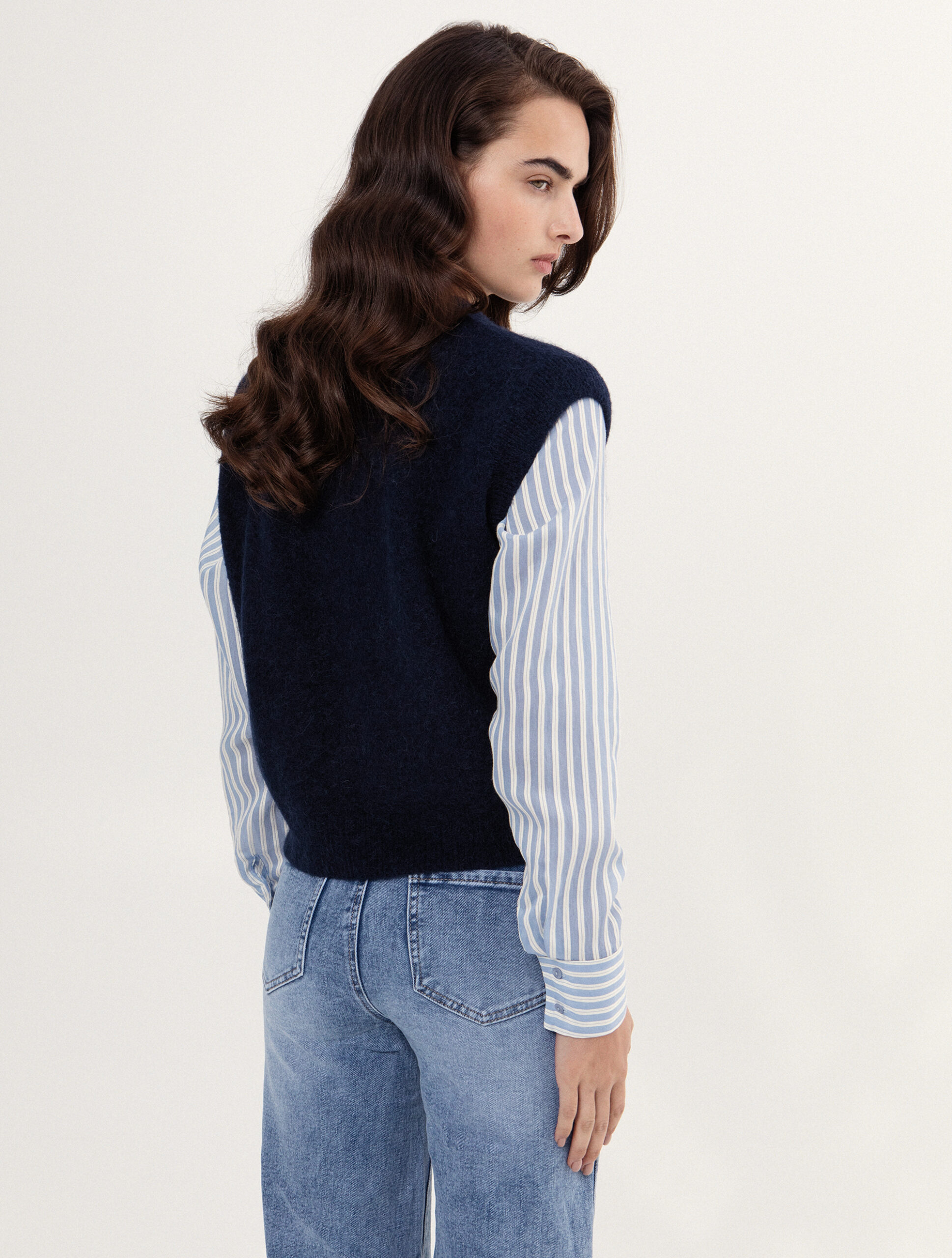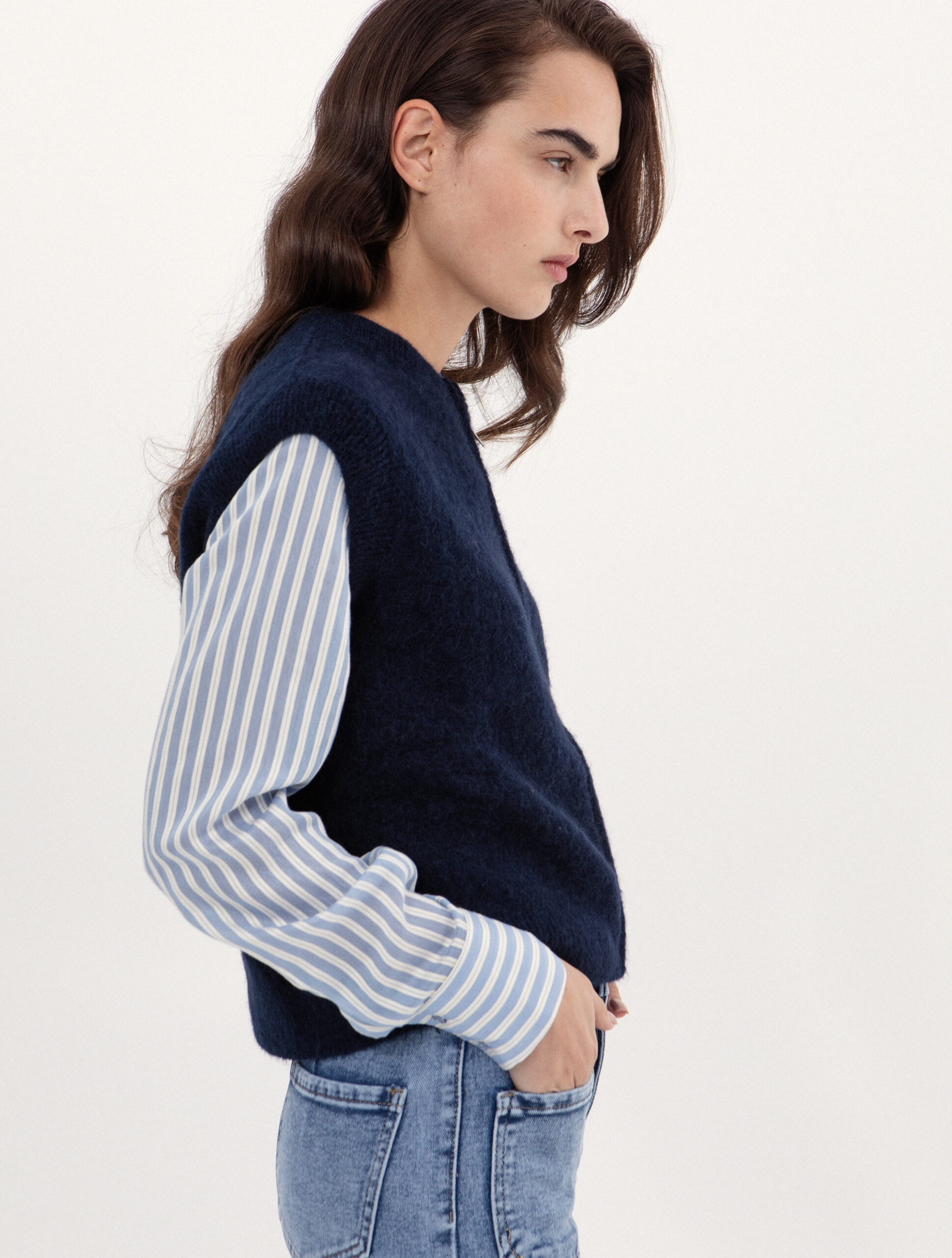 Zip-Up Knit Vest in blue