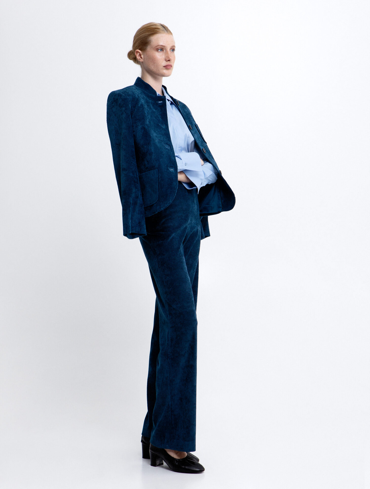 Front pleats and a wide-leg shape create a precise but relaxed cut, carrying elegance without rigidity.
