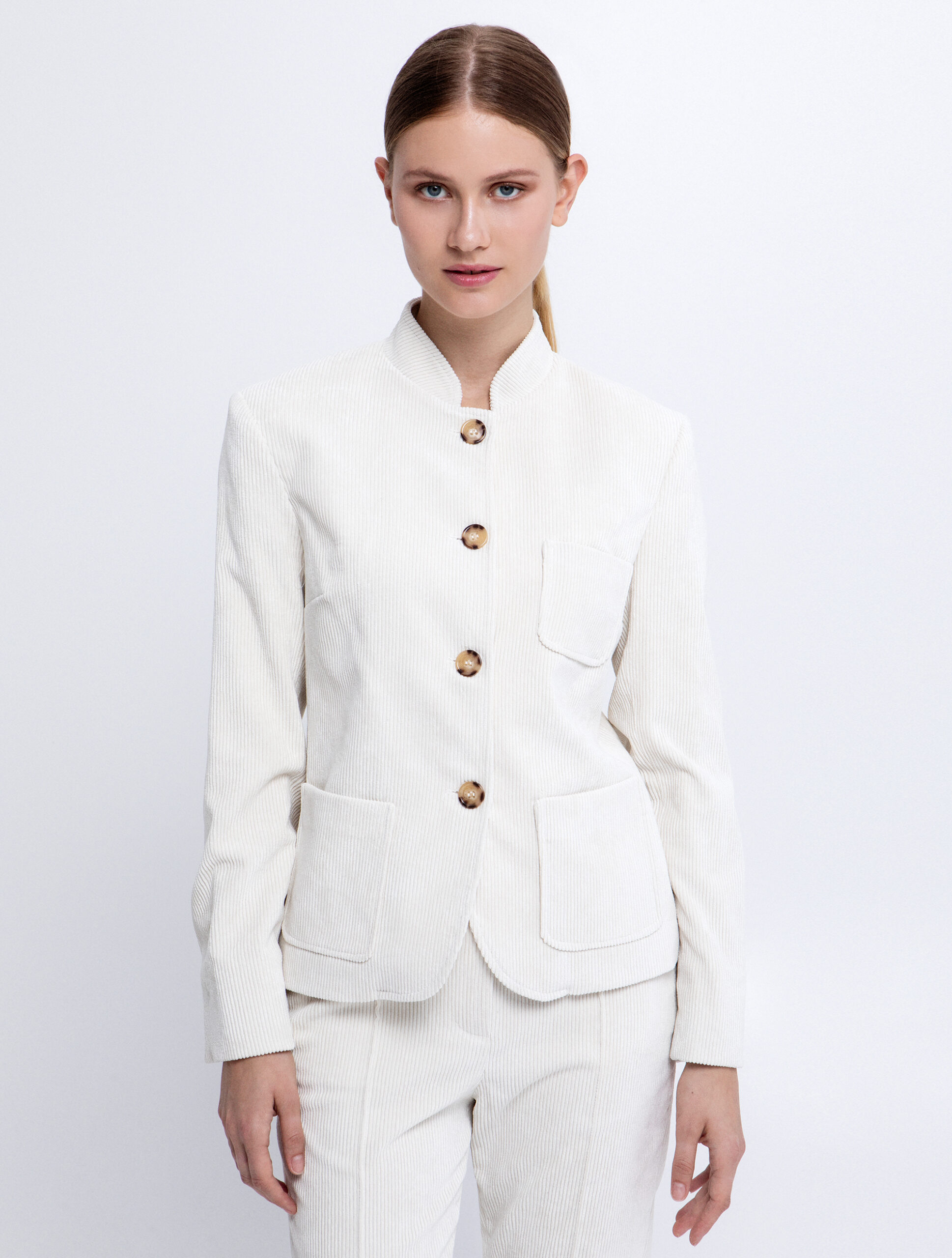 corduroy jacket with mandarin collar