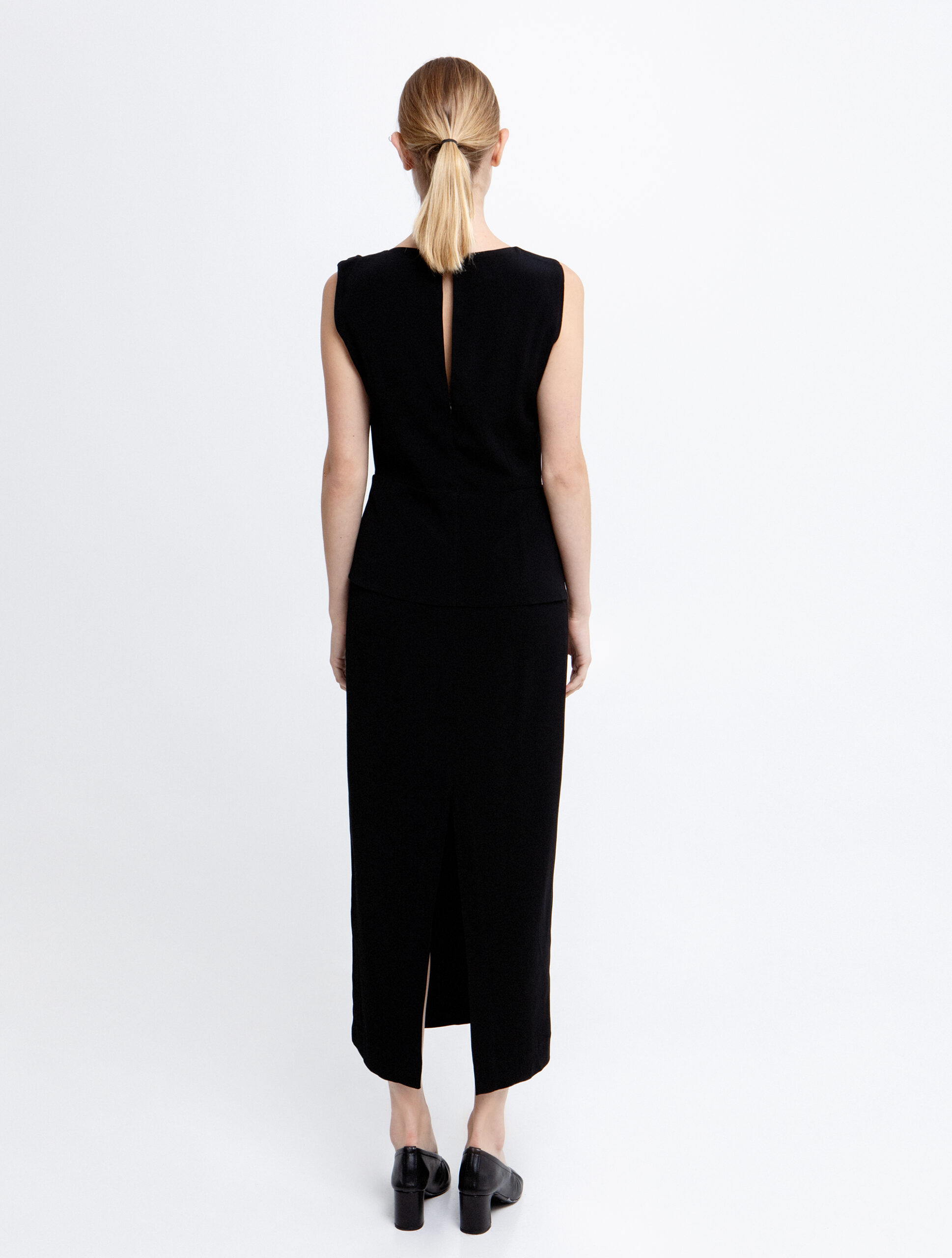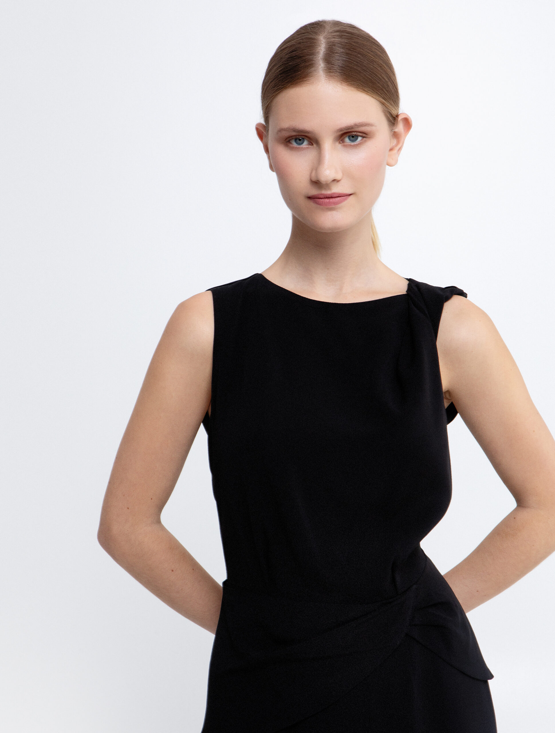 μίντι φόρεμα με ντραπέ λαιμόκοψη και ασύμμετρη μέση €239.00
