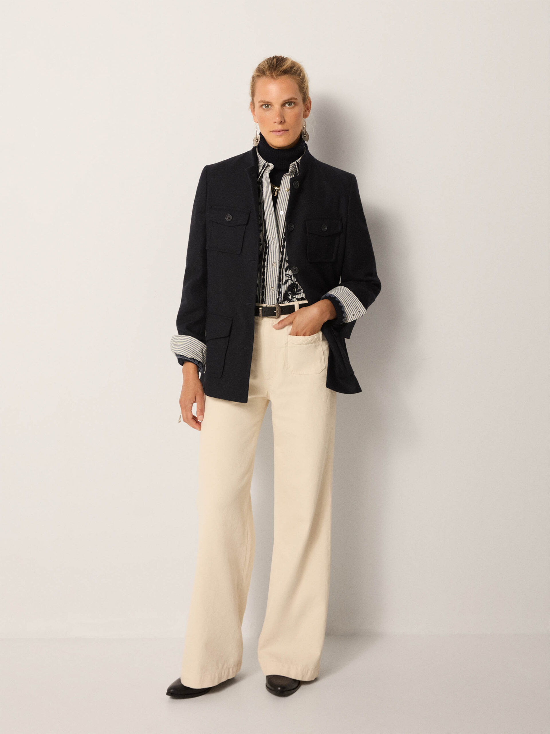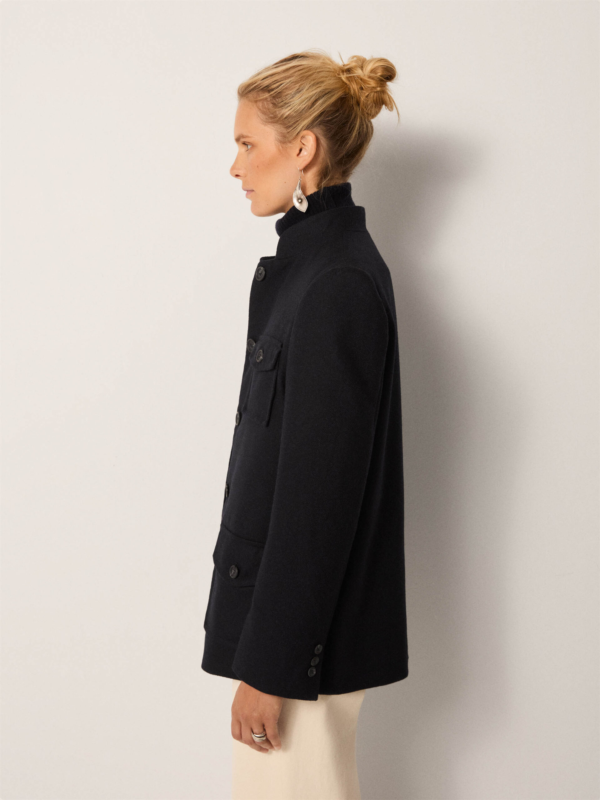 Crafted in a sturdy wool blend, the Lucien Jacket takes inspiration from utilitarian tailoring, elevated with modern polish. Its structure makes it transitional and versatile.