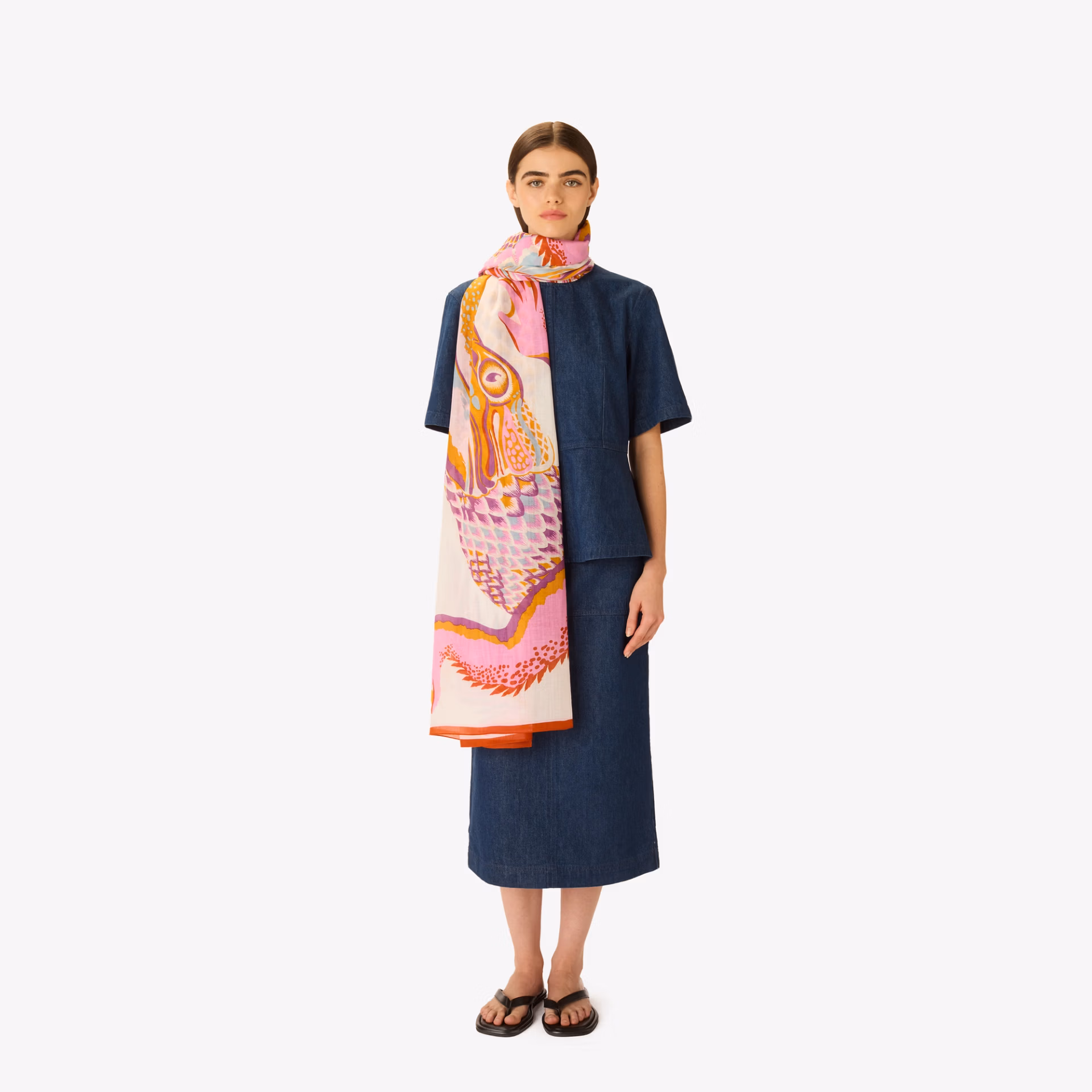 This line of hand printed Scarves comes in several sizes depending on the design. Perfect for summer, the cotton Scarf can be worn around the neck or as a pareo.
