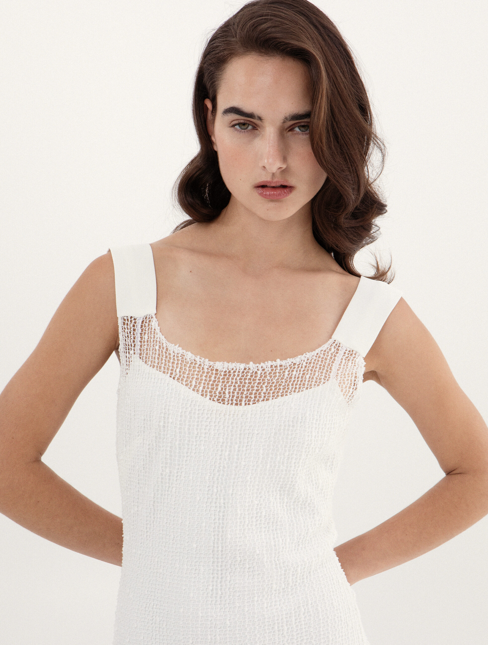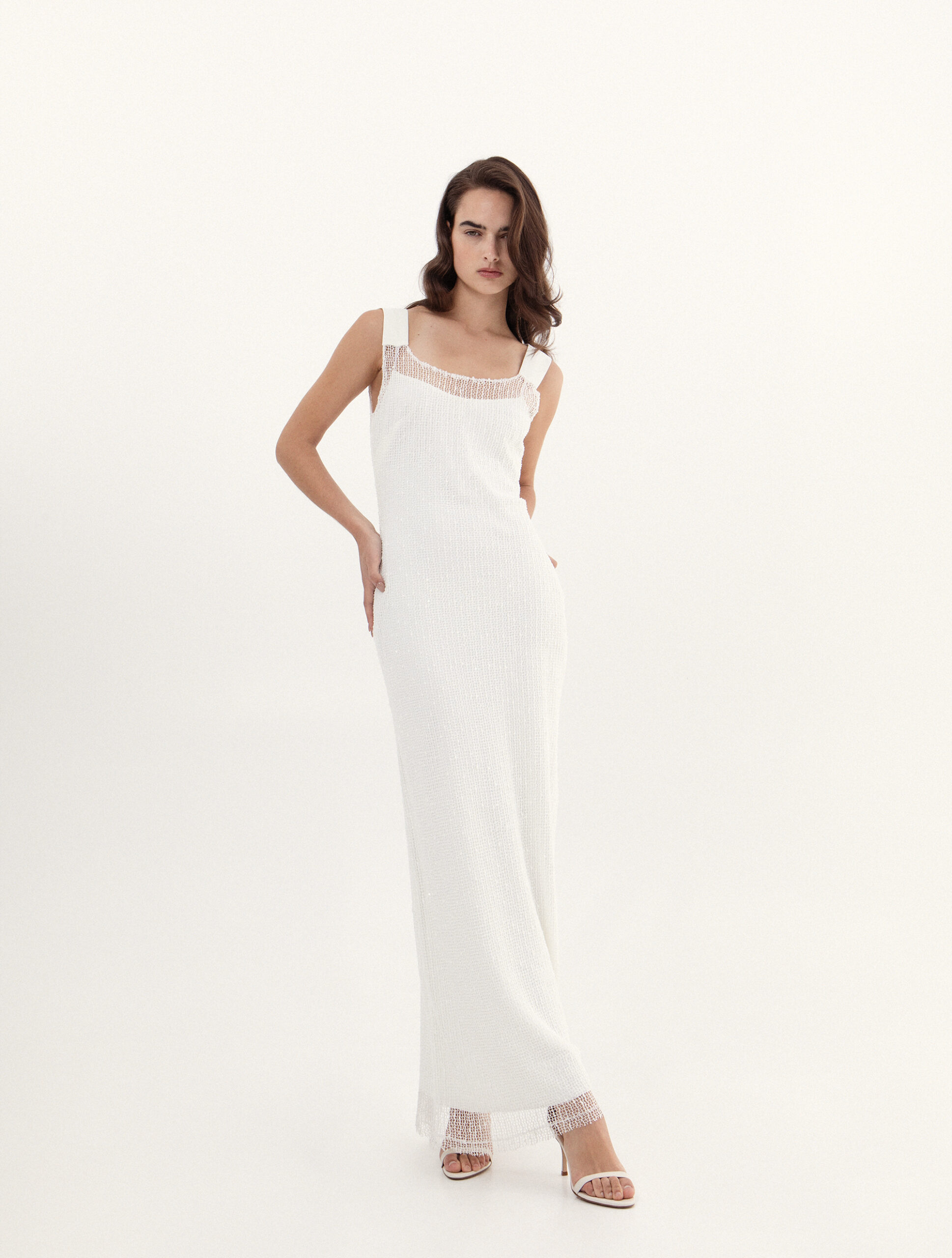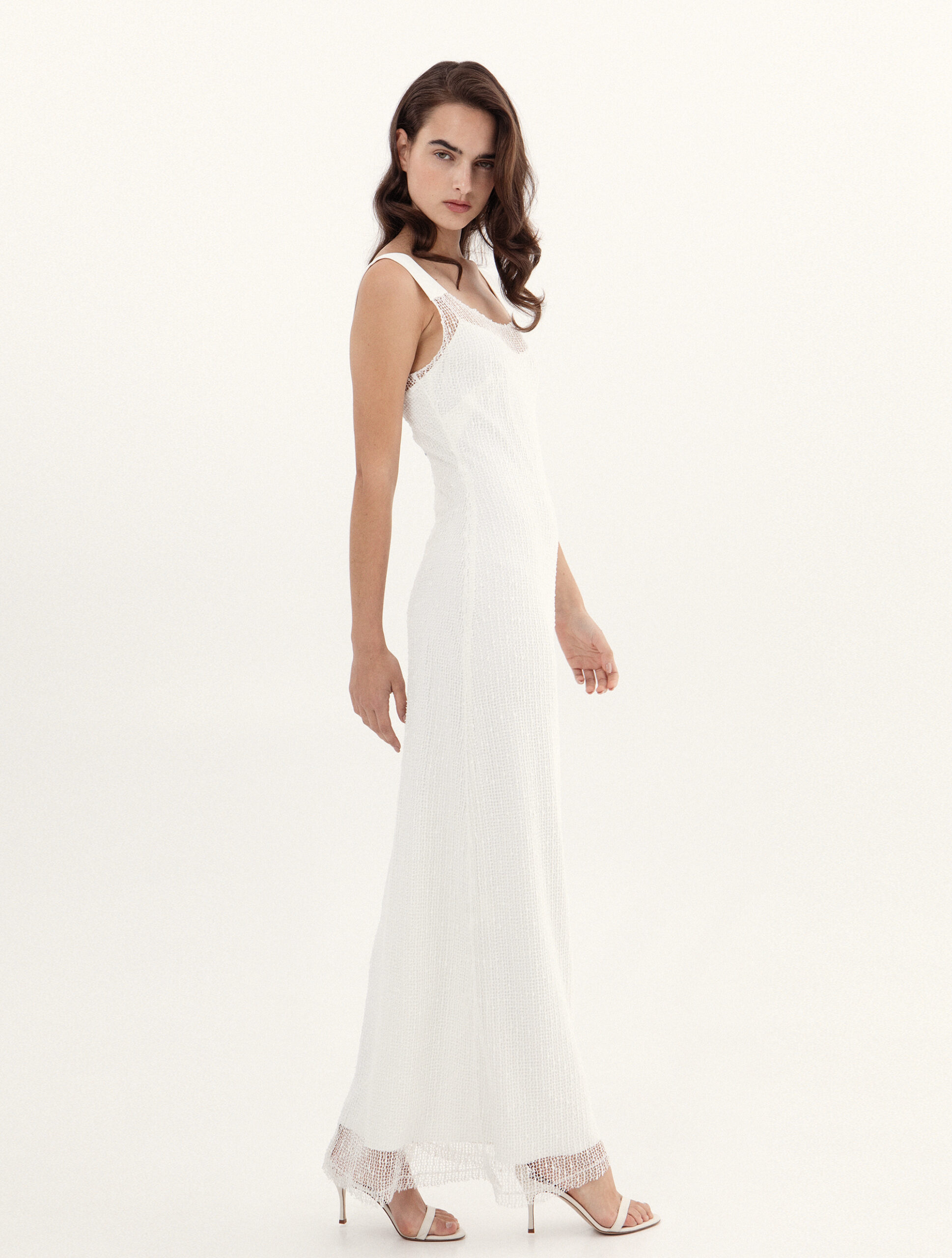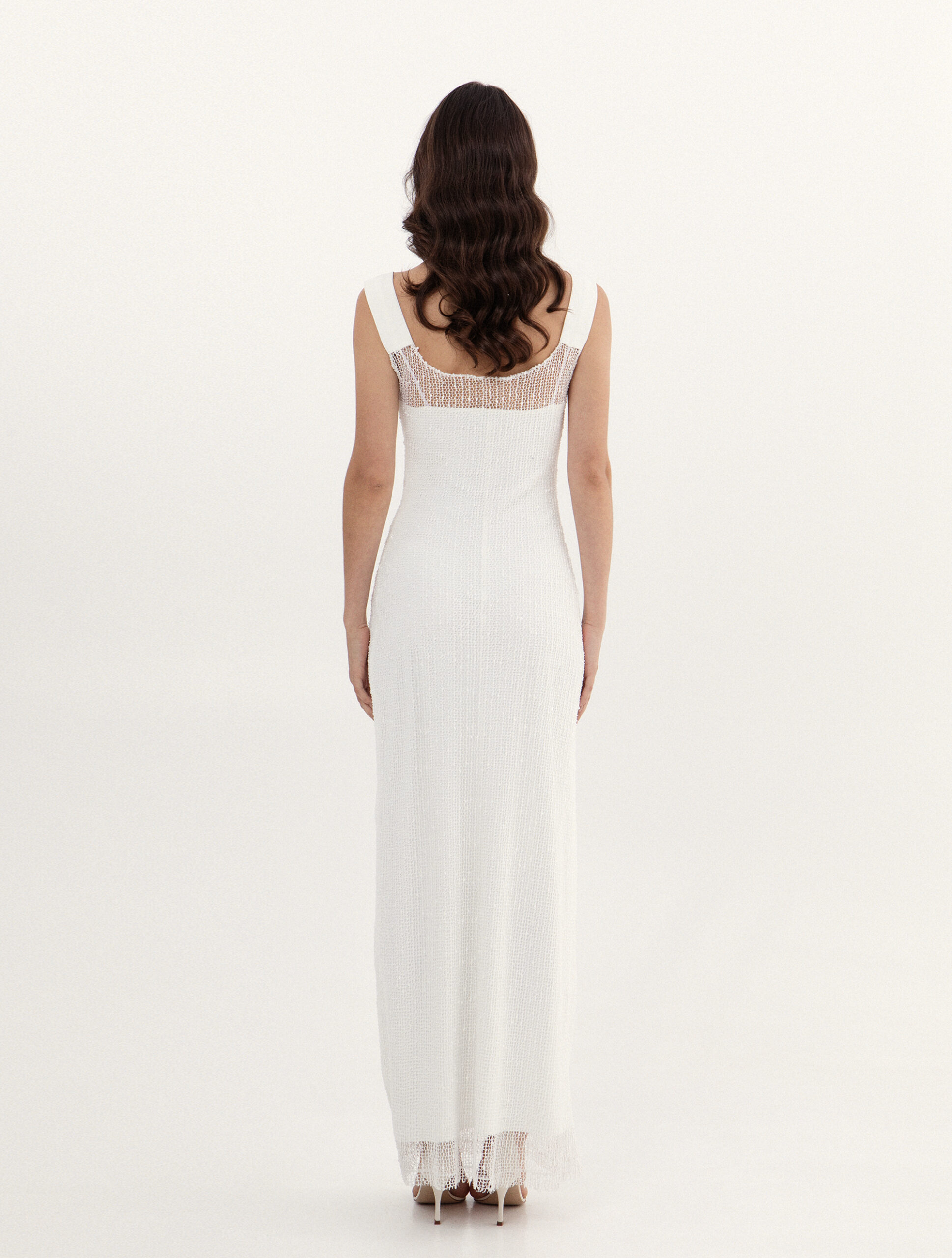 Μάξι φόρεμα Mesh Fusion Λευκό