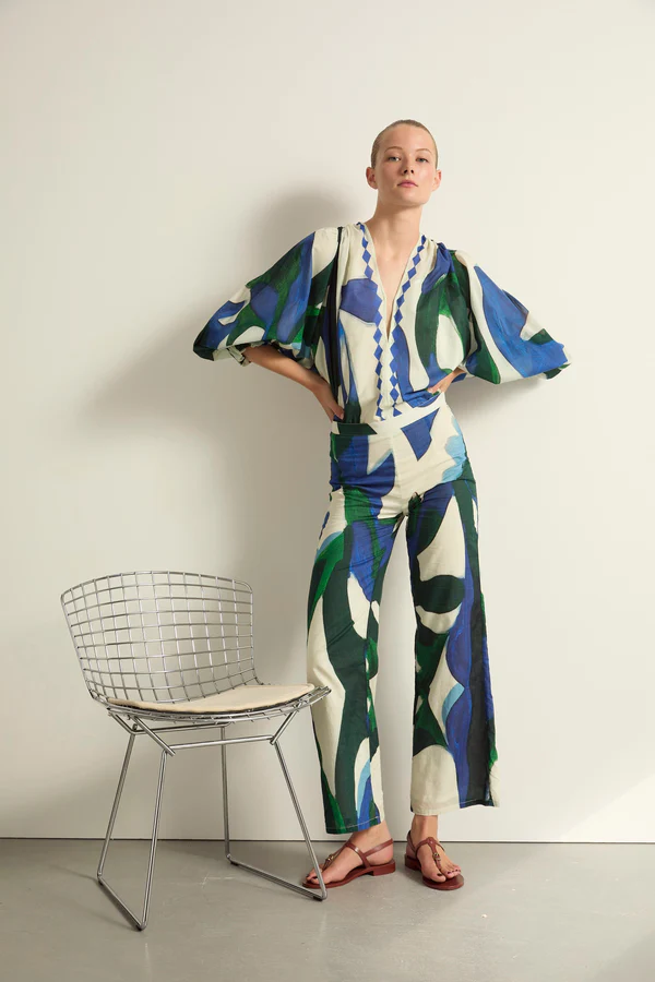 The Erika trousers are made from lightweight cotton voile and have a flared cut. Pair them with a plain shirt or create a head-to-toe look with the same print.