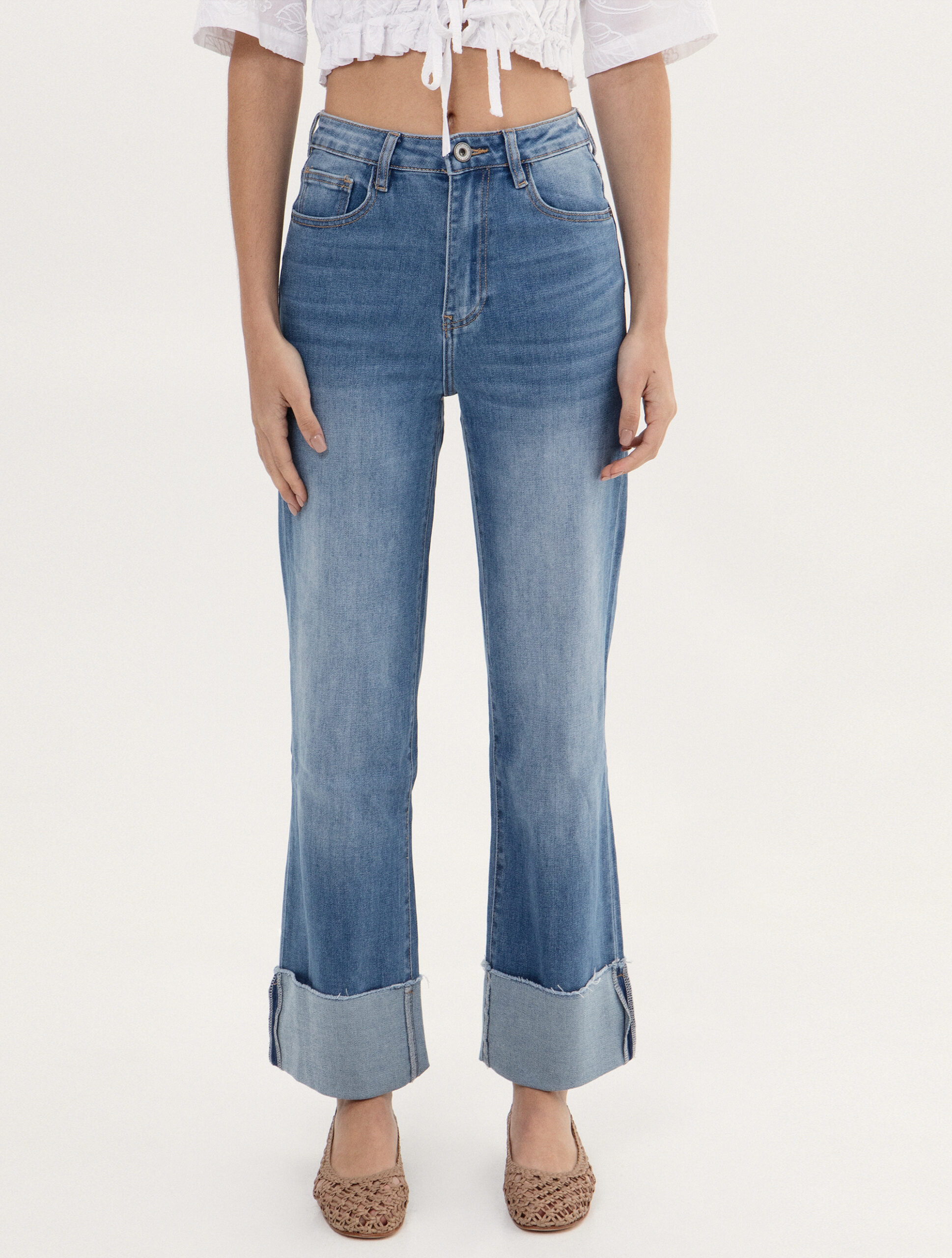 Ψηλόμεσο τζιν σε straight leg γραμμή, που συνδυάζει την κλασική vintage αισθητική με μια μοντέρνα λεπτομέρεια. Το εντυπωσιακό μεγάλο ρεβέρ στο τελείωμα δίνει μια fashion-forward πινελιά, μετατρέποντας ένα basic κομμάτι σε απόλυτο statement. Διαθέτει ψηλή μέση για σταθερή εφαρμογή που αναδεικνύει την μέση. Κλασικό πεντάτσεπο σχέδιο με λειτουργικές μπροστινές και πίσω τσέπες.