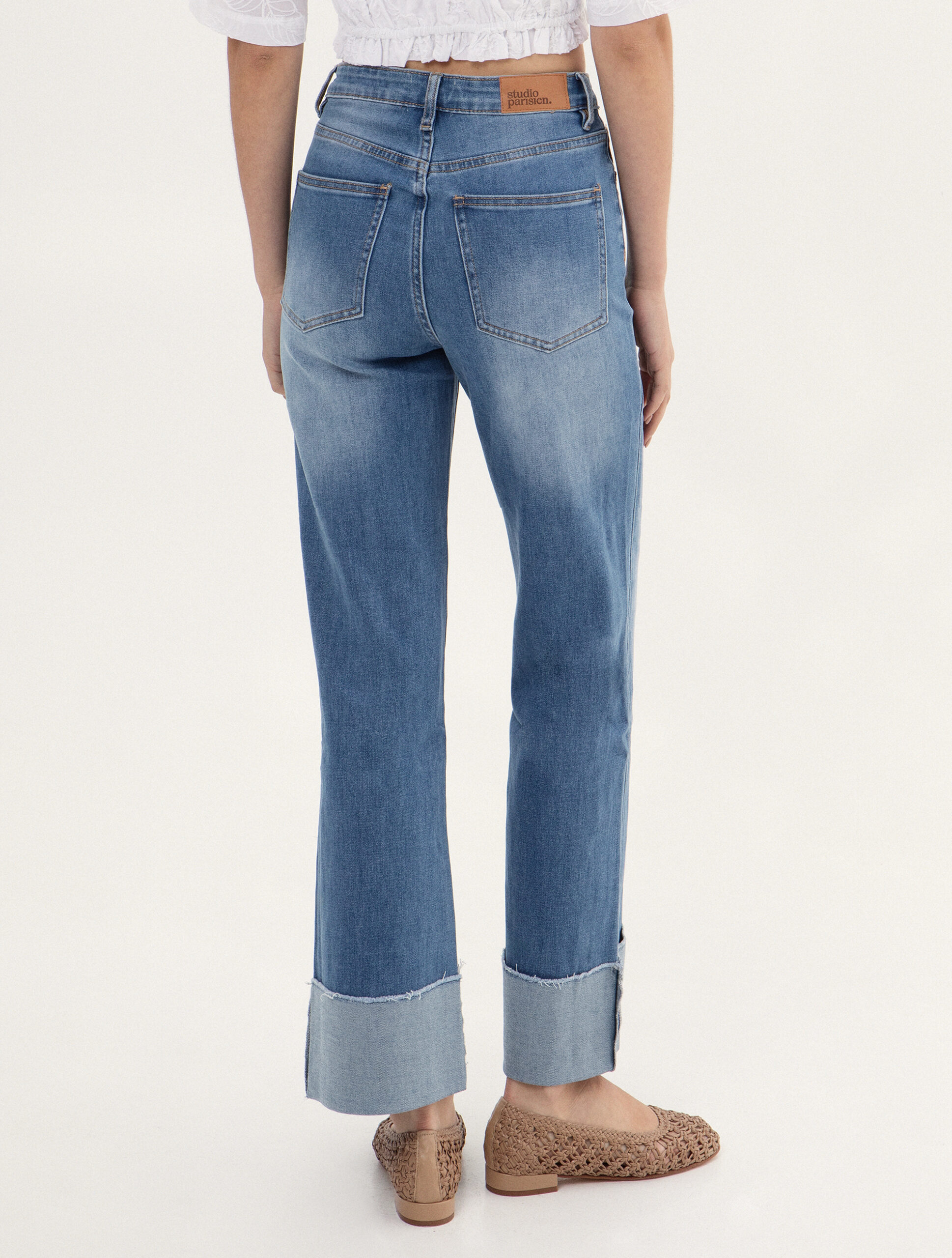 Ψηλόμεσο τζιν με φαρδύ ρεβέρ