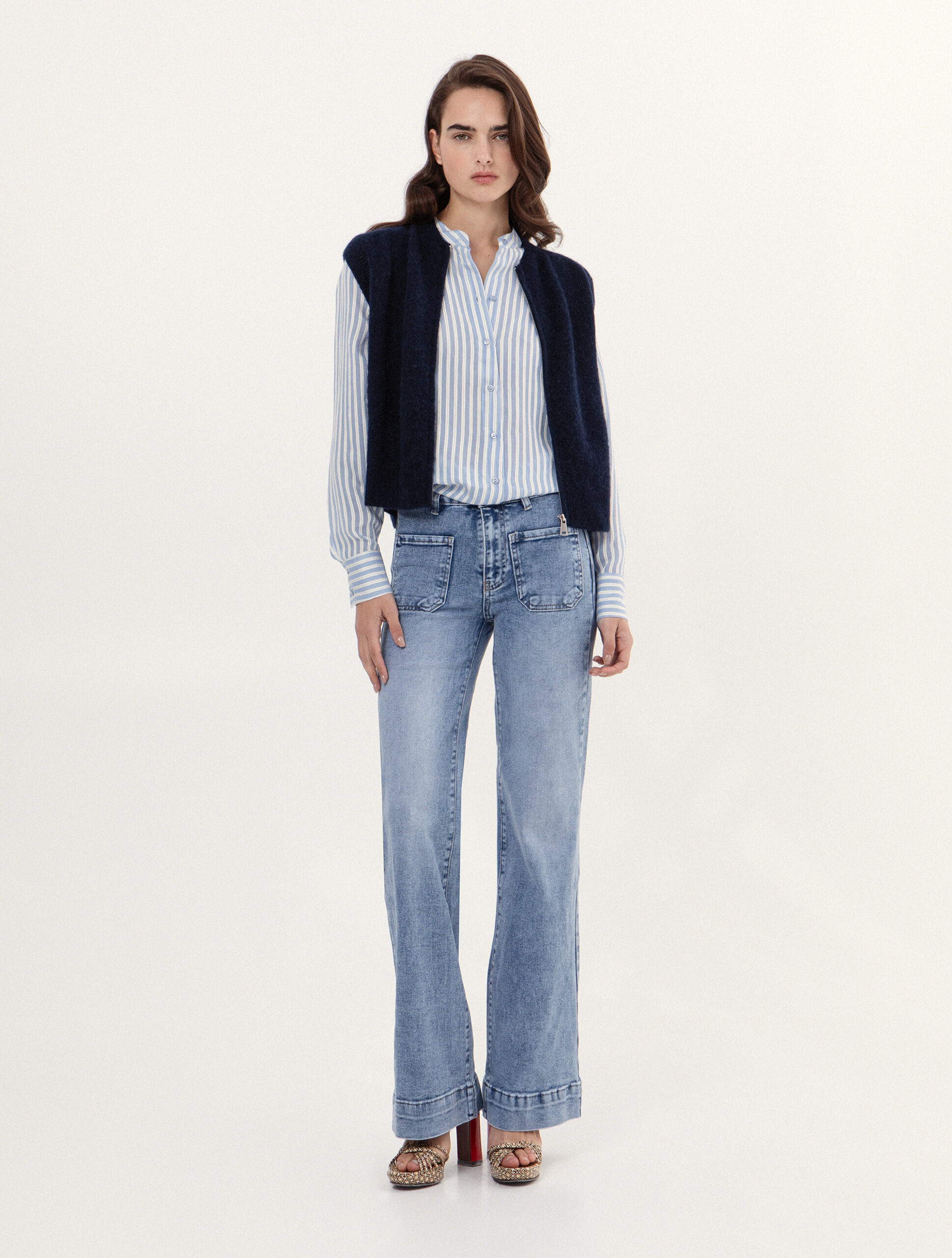 ριγέ πουκάμισο με γιακά μάο – μπλε