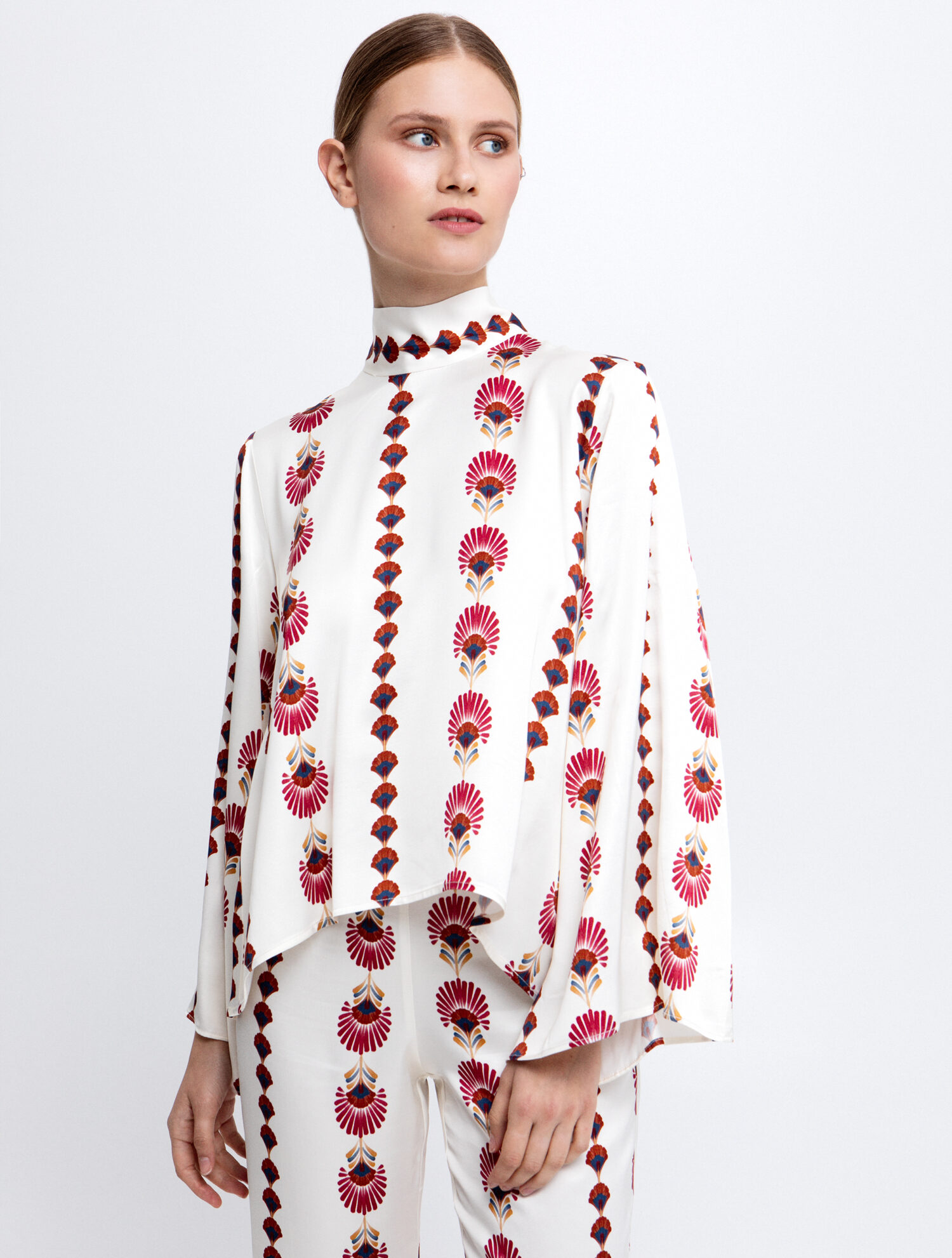 Short-sleeved maxi dress with a regular fit. Elastic loop and button closure on the back, hidden zipper closure at the side. Slit at the back hem. Body lined, sleeves sheer. Main material made from 100% recycled viscose.