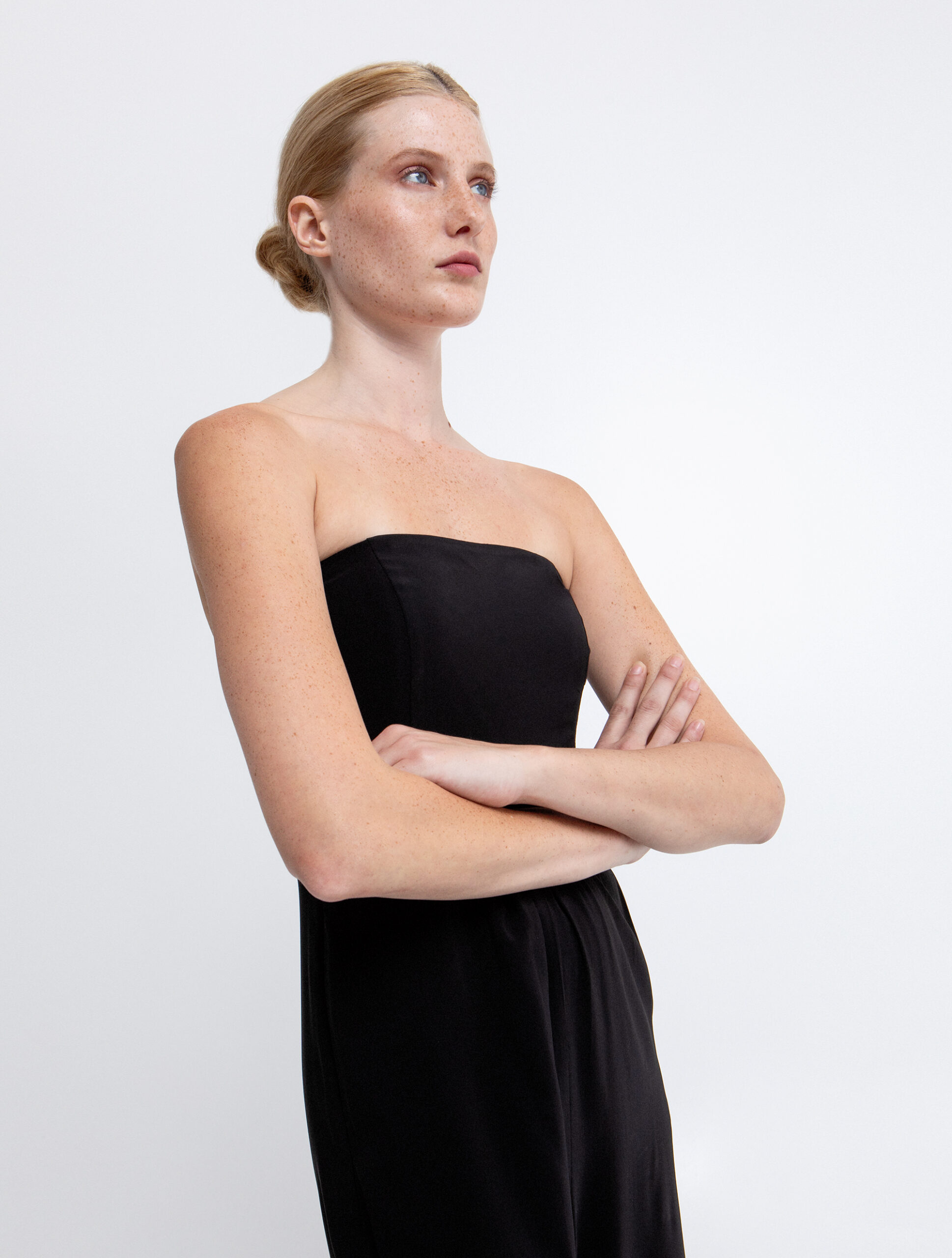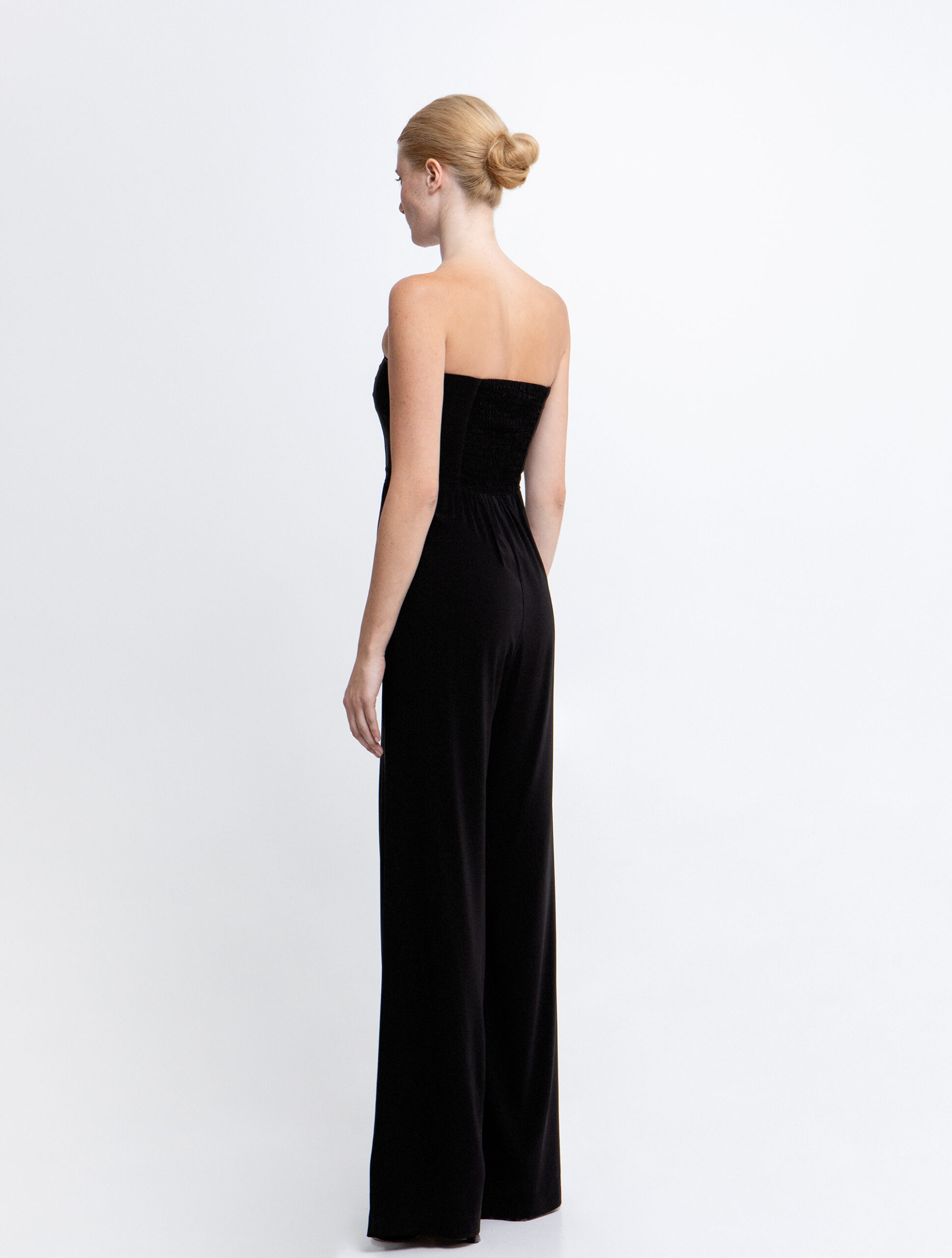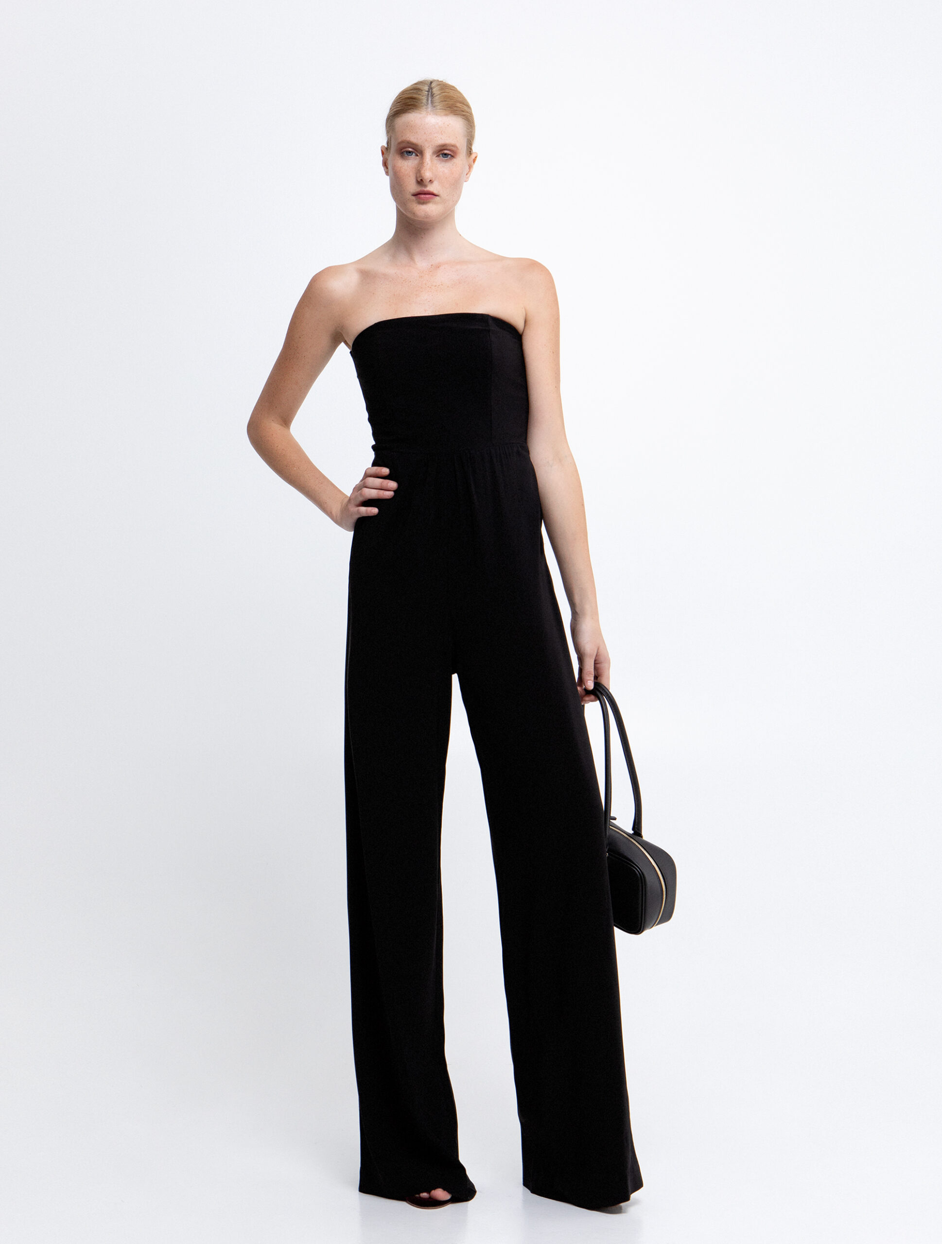 στράπλες ολόσωμη φόρμα με φαρδύ παντελόνι