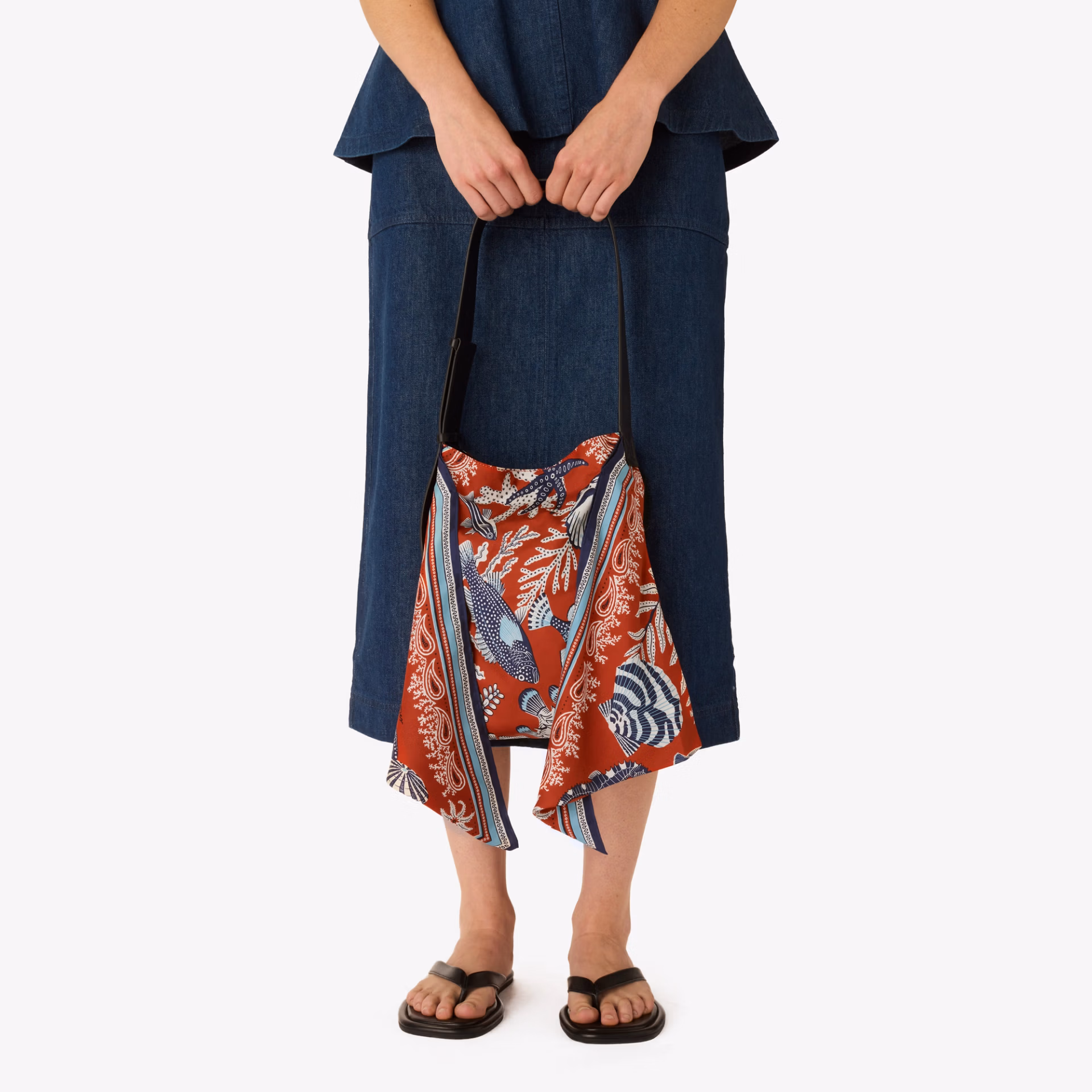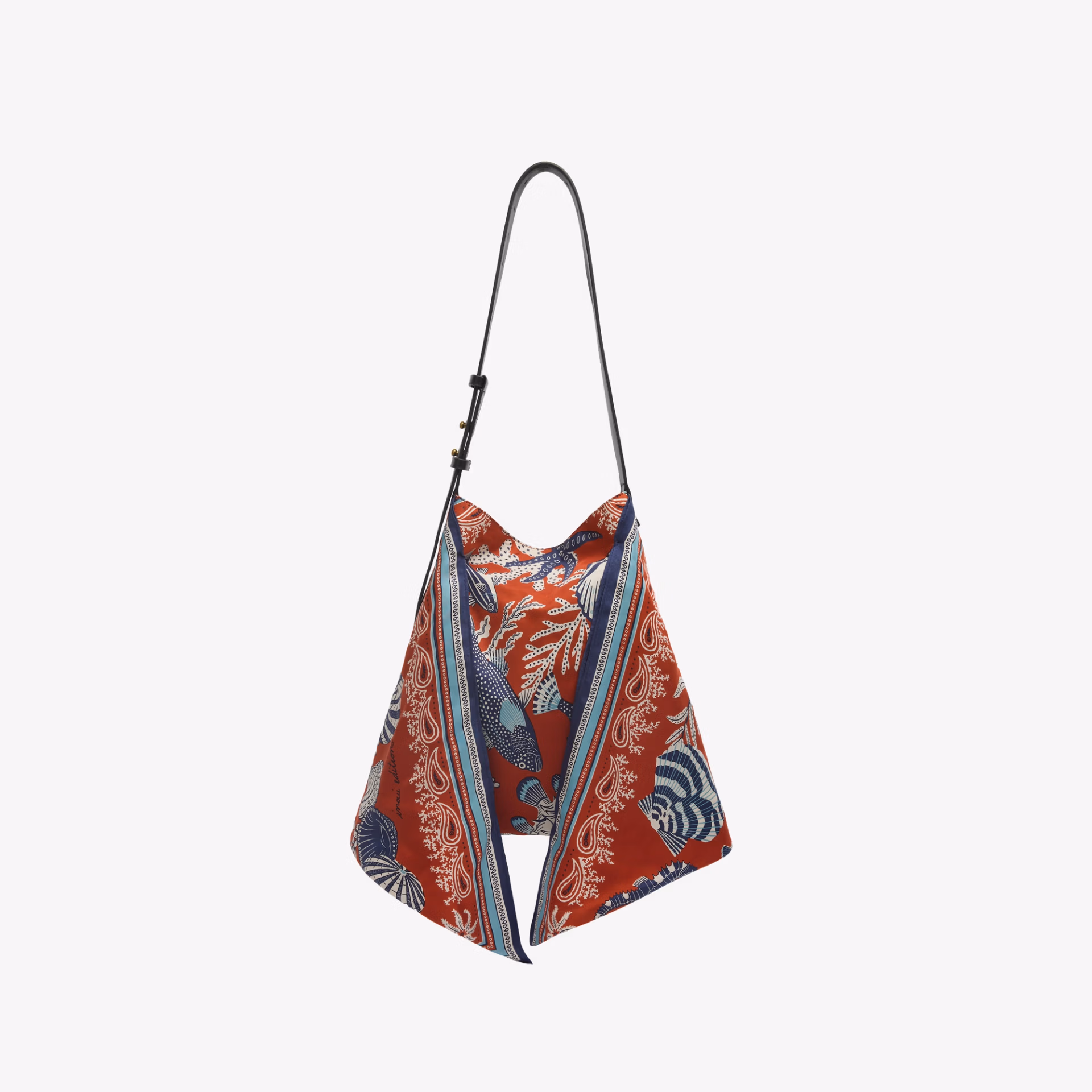 Inspired by origami, the Scarf bag is light and fluid, blending the airy silk of Inouï Square scarves with the traditional codes of leather goods.